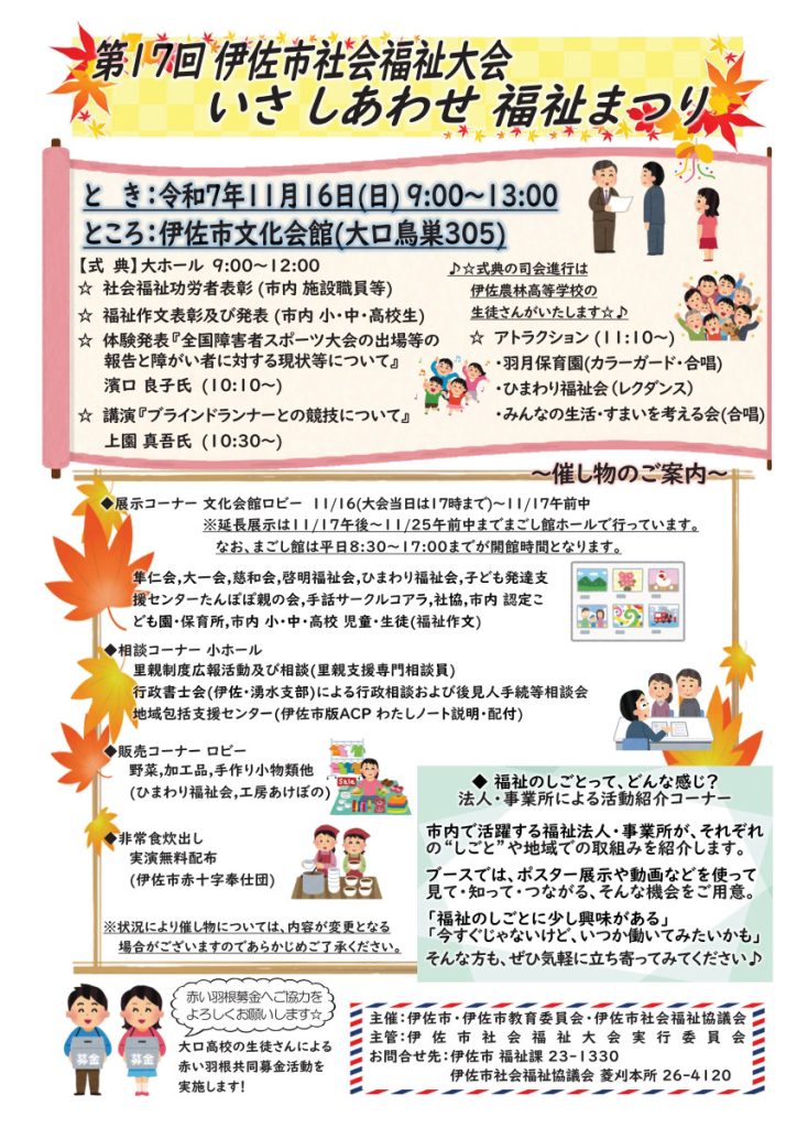 【お知らせ】令和7年度第17回伊佐市社会福祉大会 「いさ しあわせ 福祉まつり」の開催について
