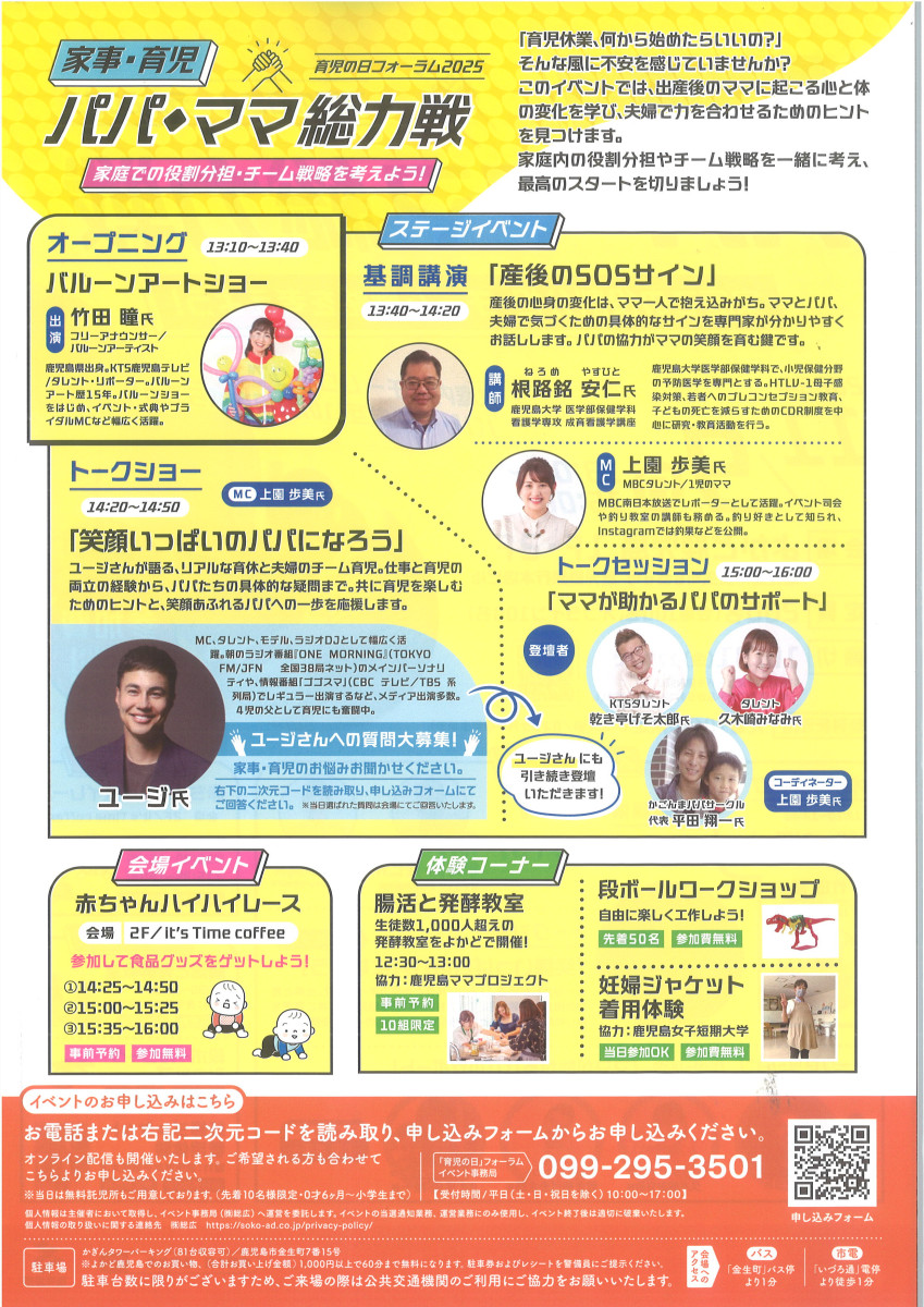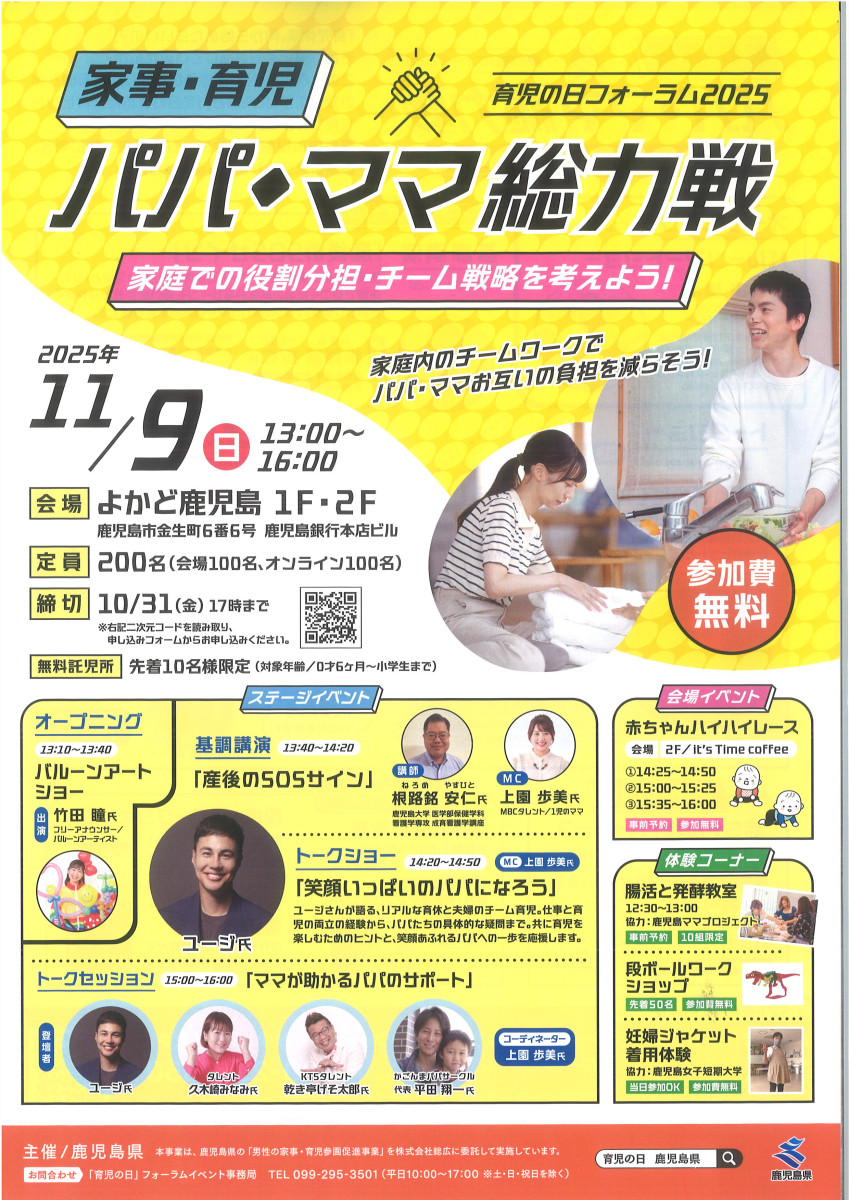 鹿児島県が今年も育児の日フォーラムを開催します。