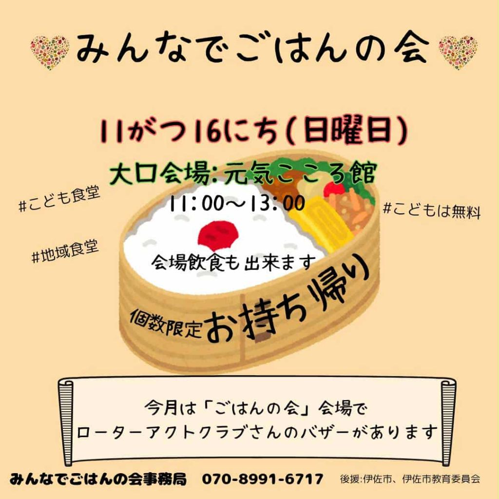 【11/16(日)】「みんなでごはんの会」「100円フリマ」の開催について