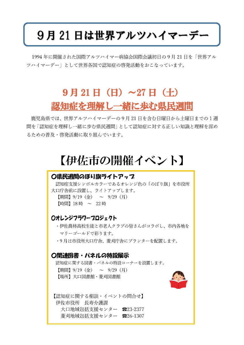 9月は「認知症月間」及び「認知症を理解し一緒に歩む県民週間」です
