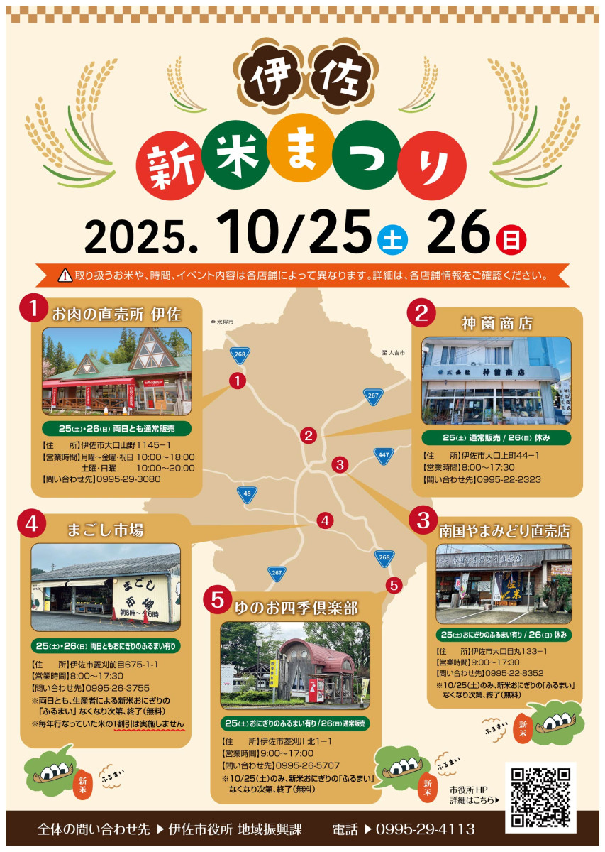 伊佐米をはじめ、A5ランク牛肉や、ごぼう、ねぎかぼちゃなどの地元の農産物の販売、キッチンカー、「伊佐米重量あてまSHOW」など多種多様な店舗が出店。