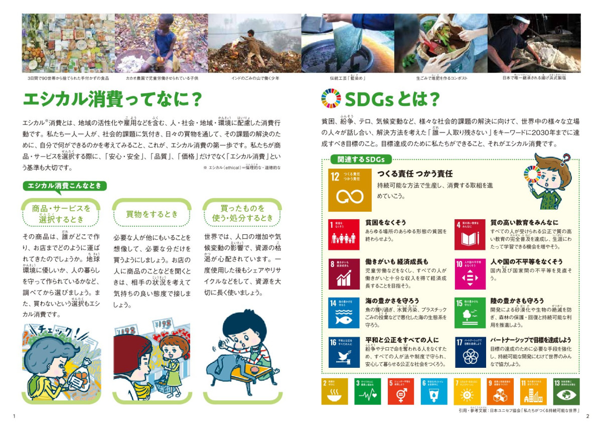 ~エシカルとは「倫理的」という意味で、物やサービスを購入するときに、人や社会、環境に配慮したものを選ぶことを「エシカル消費」といいます。公正で持続可能な社会のために、今、私たちに求められる責任の一つです。