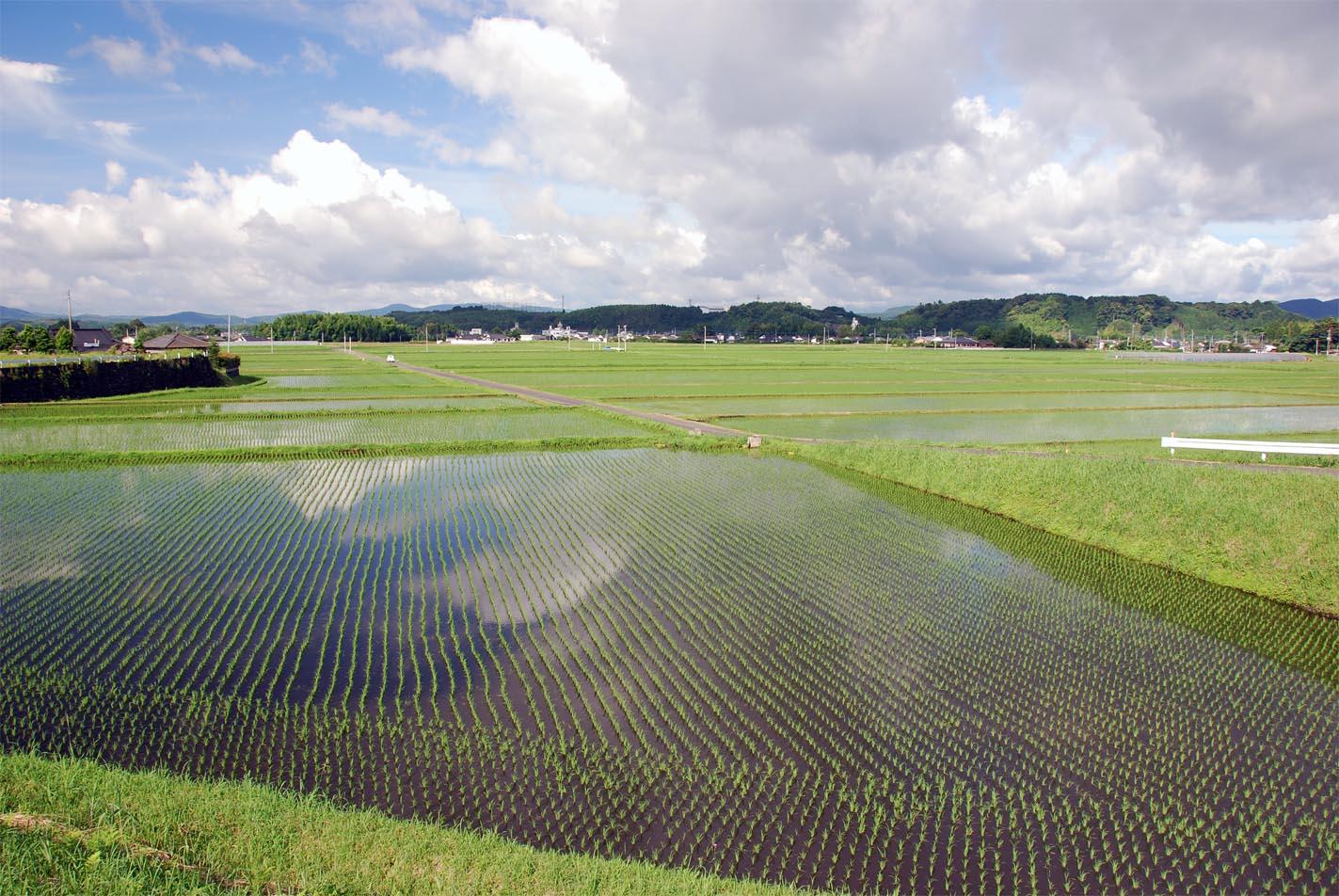 青田風吹く伊佐の田圃は、さざ波が押し寄せているような光景です。都会では味わえない自然の風や匂いが