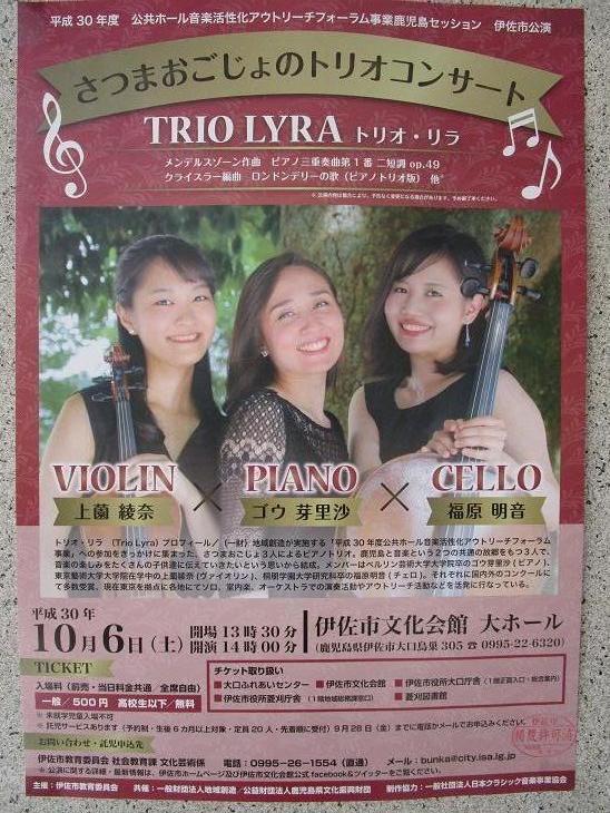 その他、ご紹介したいのが6日(土曜日)文化会館にて、魅力的な女性トリオの演奏会「さつまおご