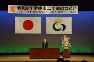 1月3日には「伊佐市二十歳のつどい」を開催し、実行委員会の協力と参加者の意識の高さによって素晴らしい式典になったと思っています。当日は、多くの若者の雄姿を拝見し、頼もしさを感じながら式辞を述べさせていただきましたが、幸せな時間を共有できたことに喜びを感じています。