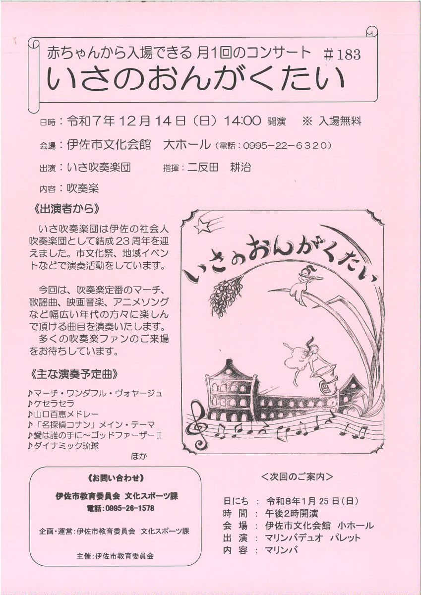 「いさのおんがくたいミニ・コンサート」を開催いたします。ぜひご来場ください。
