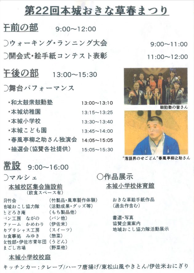 【3月15日(日)開催!】第22回本城おきな草春まつり