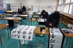 運動部と掛け持ちの部員もいますが、県書道展への出品や「もみじ祭り」などでのパフォーマンスもやっています。