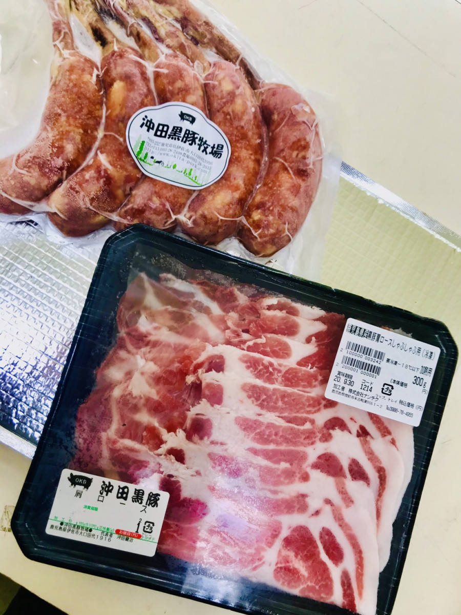 〇内容 沖田黒豚骨付フランクソーセージ100g×5本、 沖田黒豚しゃぶしゃぶ肉1パック