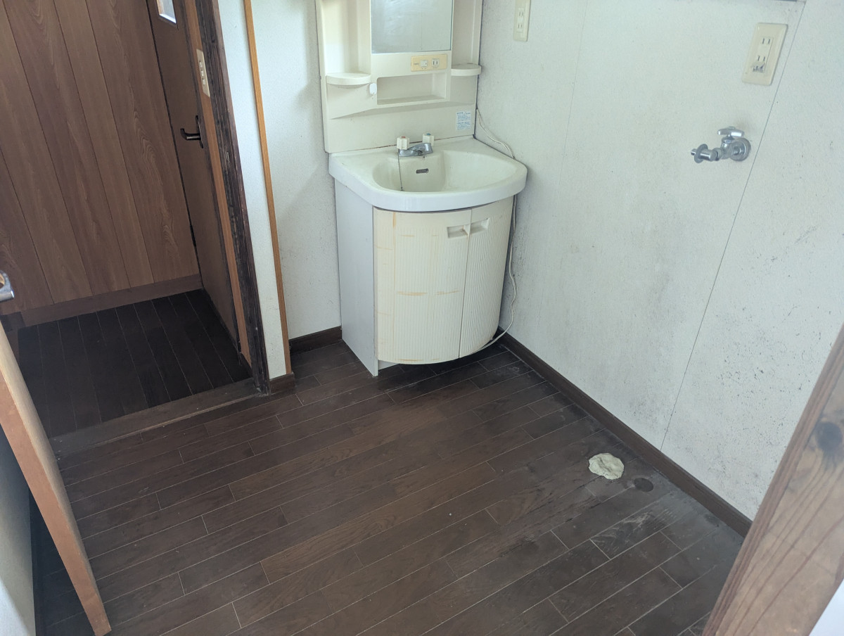こちらは洗面所、脱衣所。お写真右手には洗濯機置き場も確認できました。