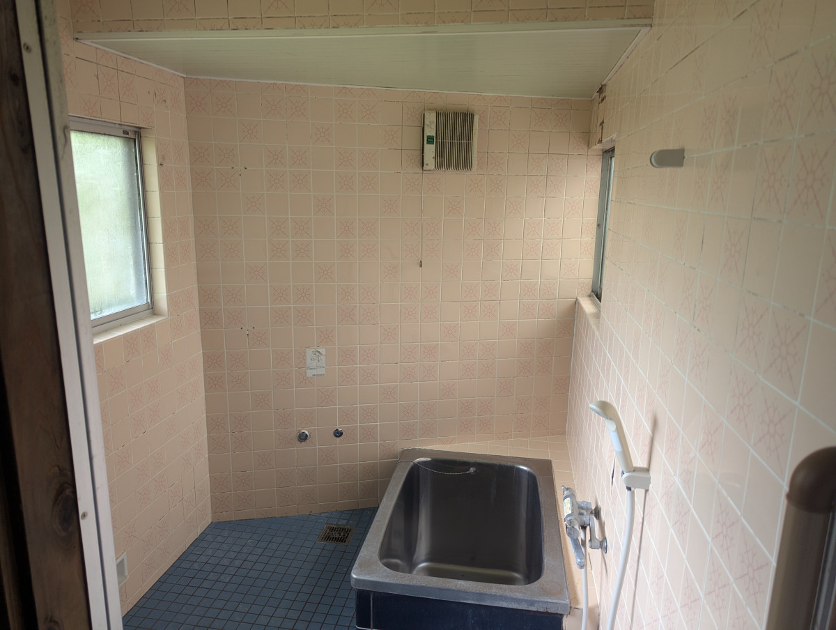 浴槽はお湯が冷めにくいのが特徴の昔ながらのステンレス製。お湯は電気焚きですが、湯沸かし器が作動するかどうかは、要確認との事です。