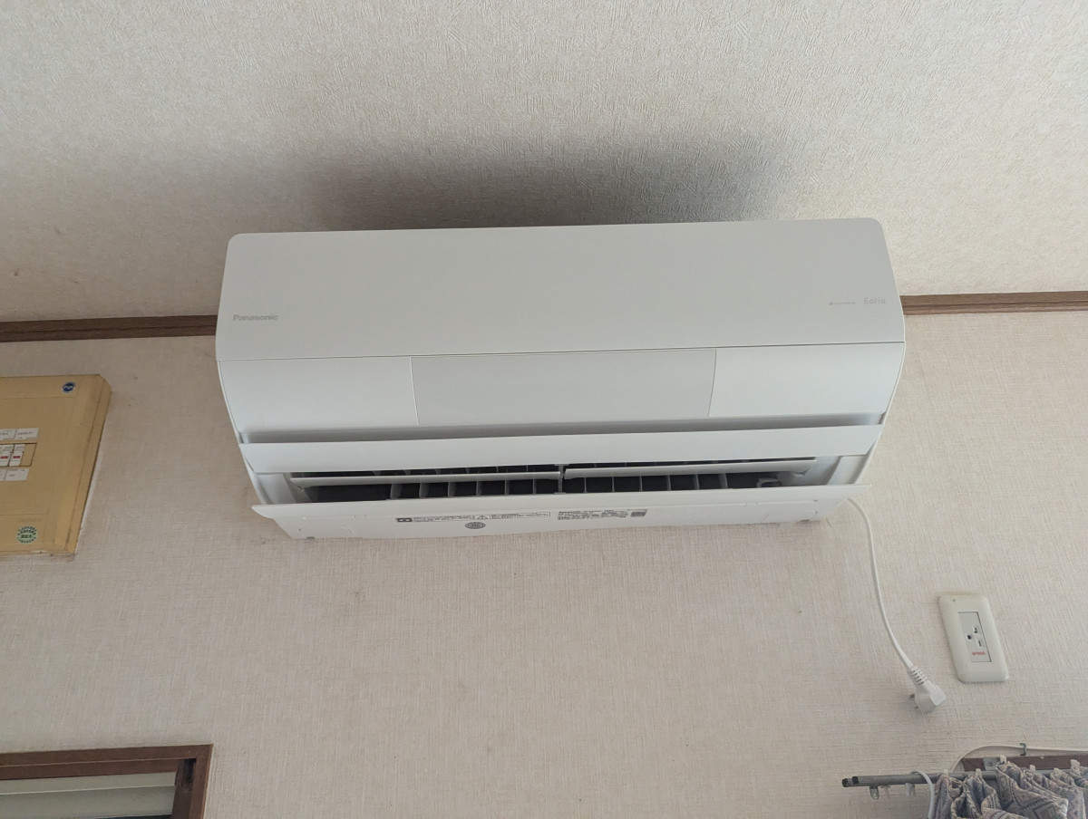 過ごす時間が長くなりそうなこちらのお部屋には、まだ初々しさが残るエアコンも設置されていました。