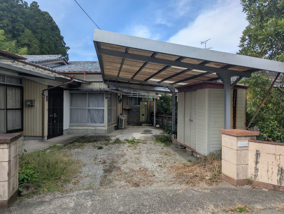 母屋の目の前には、車1台分ほどのスペースの屋根付き駐車場があります。