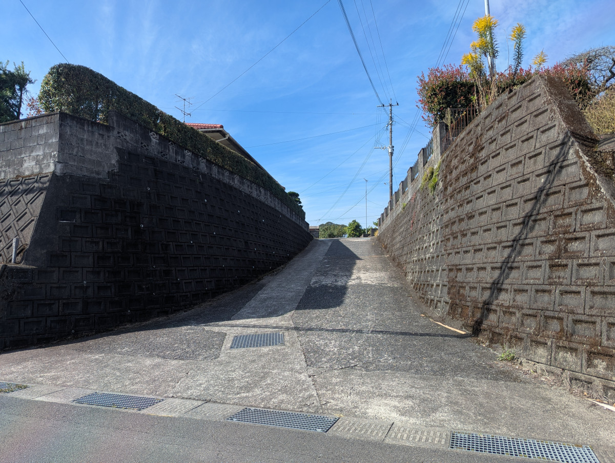 住宅街の小道を進んでいきますと、今回の物件のエントランスが見えて参りました。