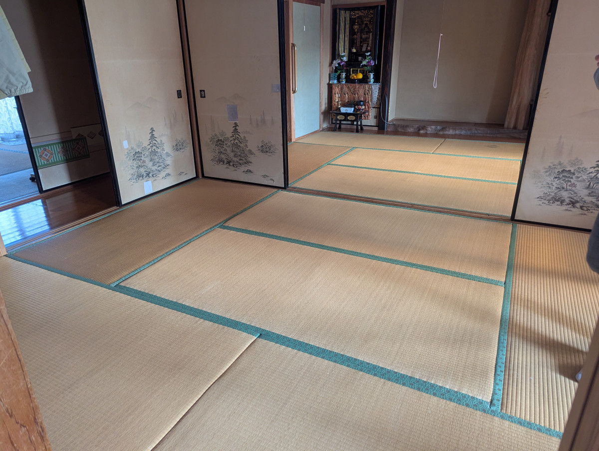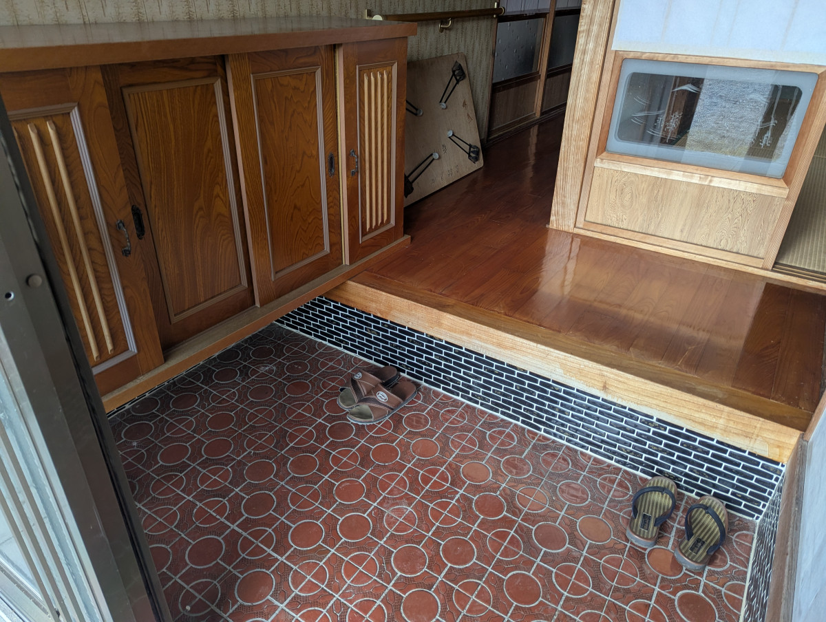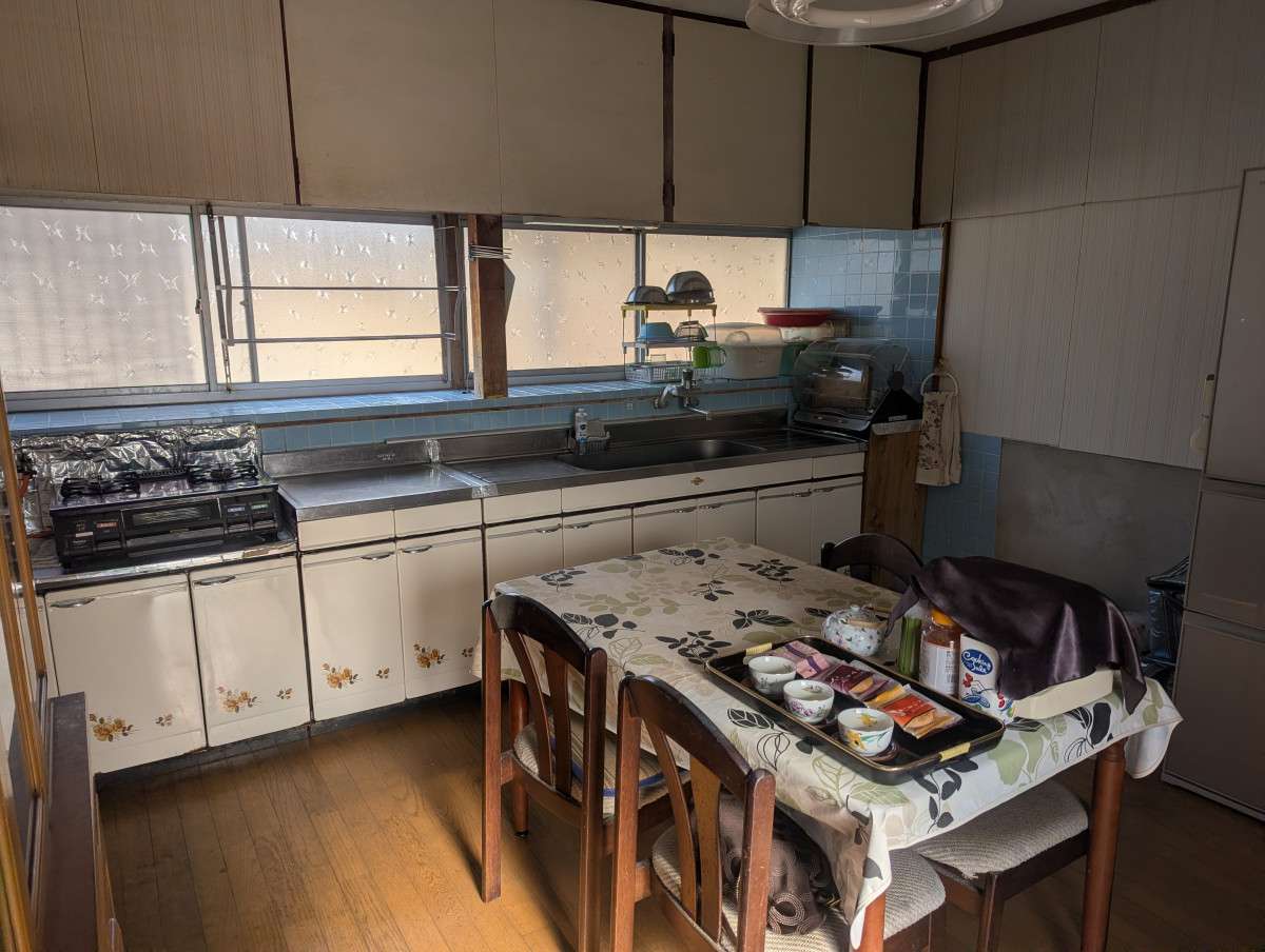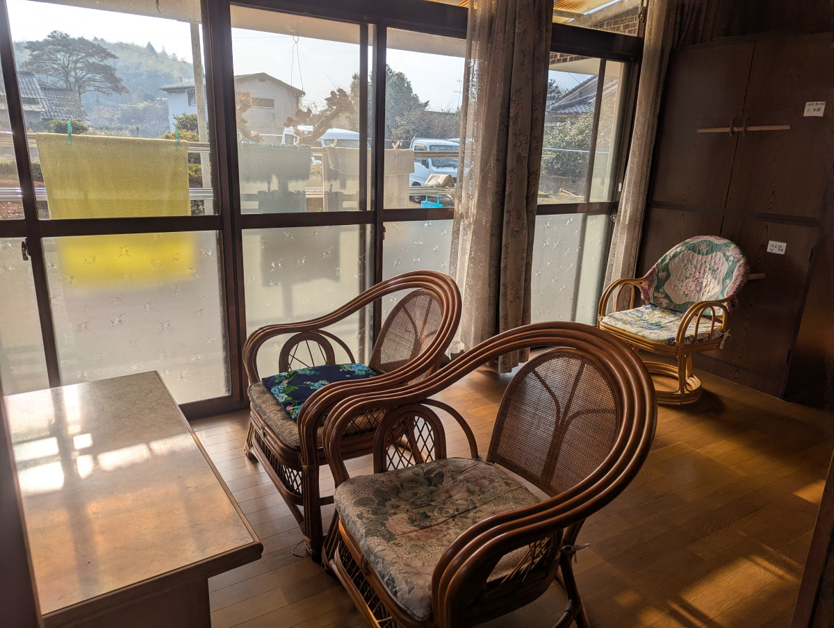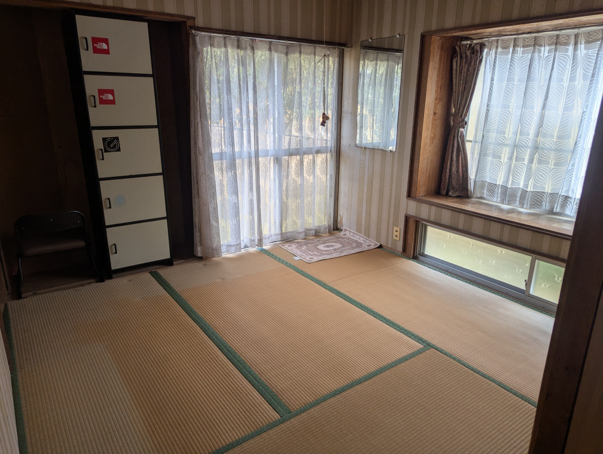 内覧させて頂いた当日は、6帖の和室にはこたつとカーペット、そして焚いている石油ストーブの上にはヤカンを置いて、暖を取られておりました。