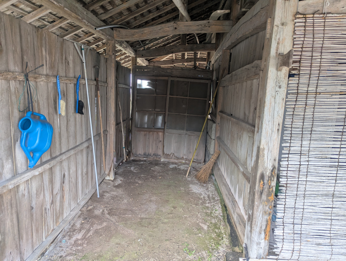 母屋左手には立派な納屋がございます。築年数相応の味わいがありますが、とても綺麗に整えられております。
