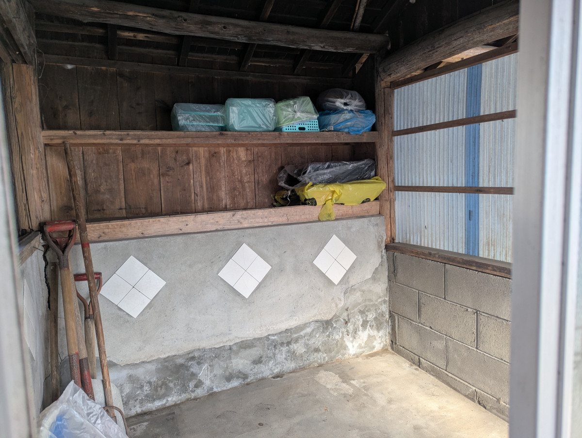 生活道具はもちろんの事、小さめの農機具を収納するにもぴったりです。