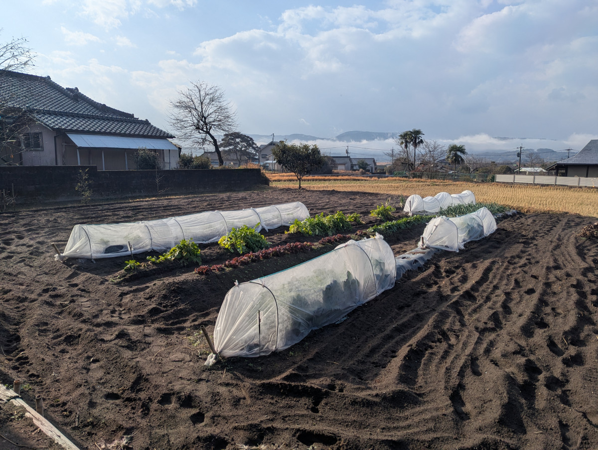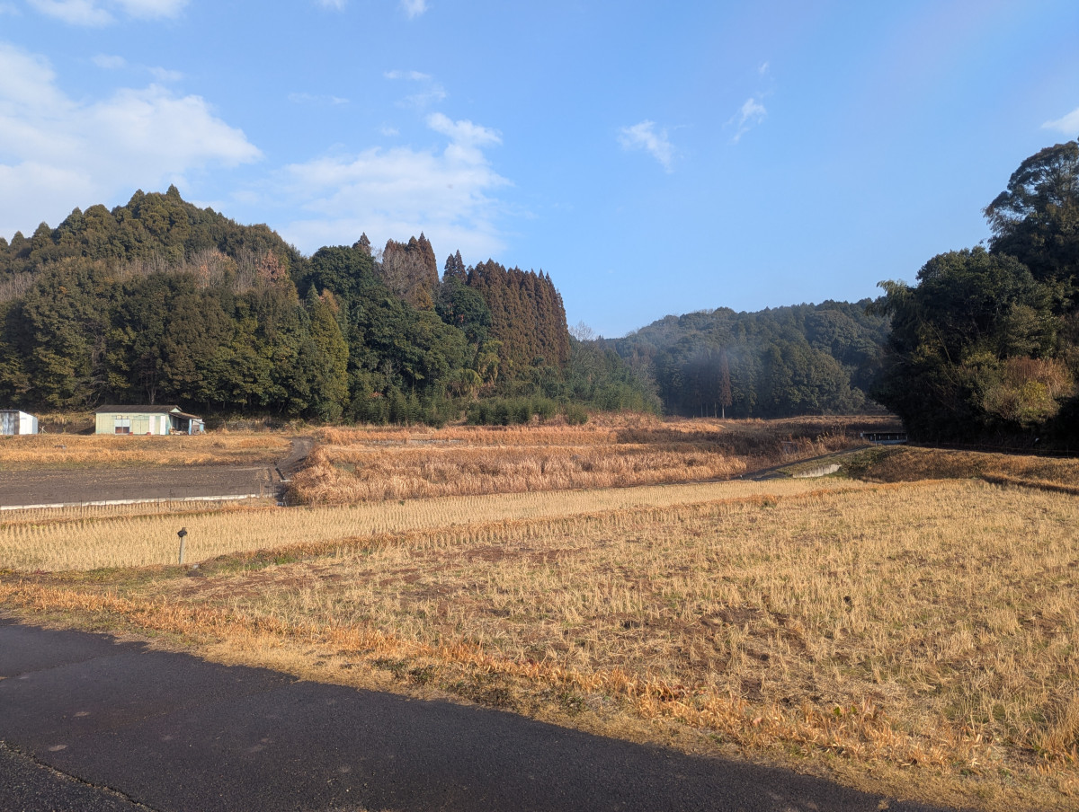 奥には田んぼ、山、朝靄という、伊佐らしくて美しい景色が広がっていました。こんな景色を感じながら畑仕事ができるのも、日々の生活の楽しみとなりそうですね。