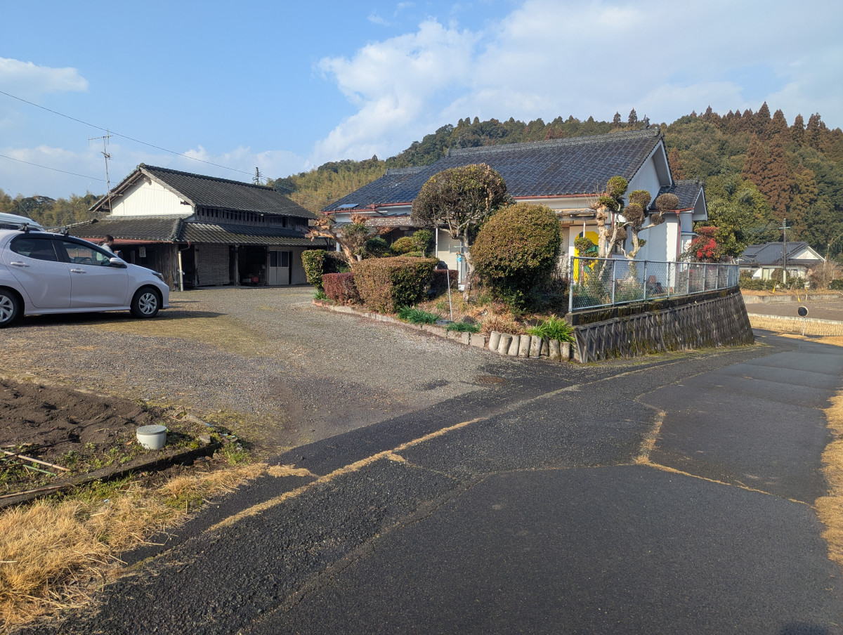 場所は菱刈校区、物件周辺はのどかな田園風景。一見不便なのかと思いきや、コンビニまでは徒歩圏内。サウナなどの設備が充実している温泉や、地元の食材が充実している市場までは車で5分。大口の市街地までも10分圏内と、立地環境も魅力的!では早速参りましょう〜。